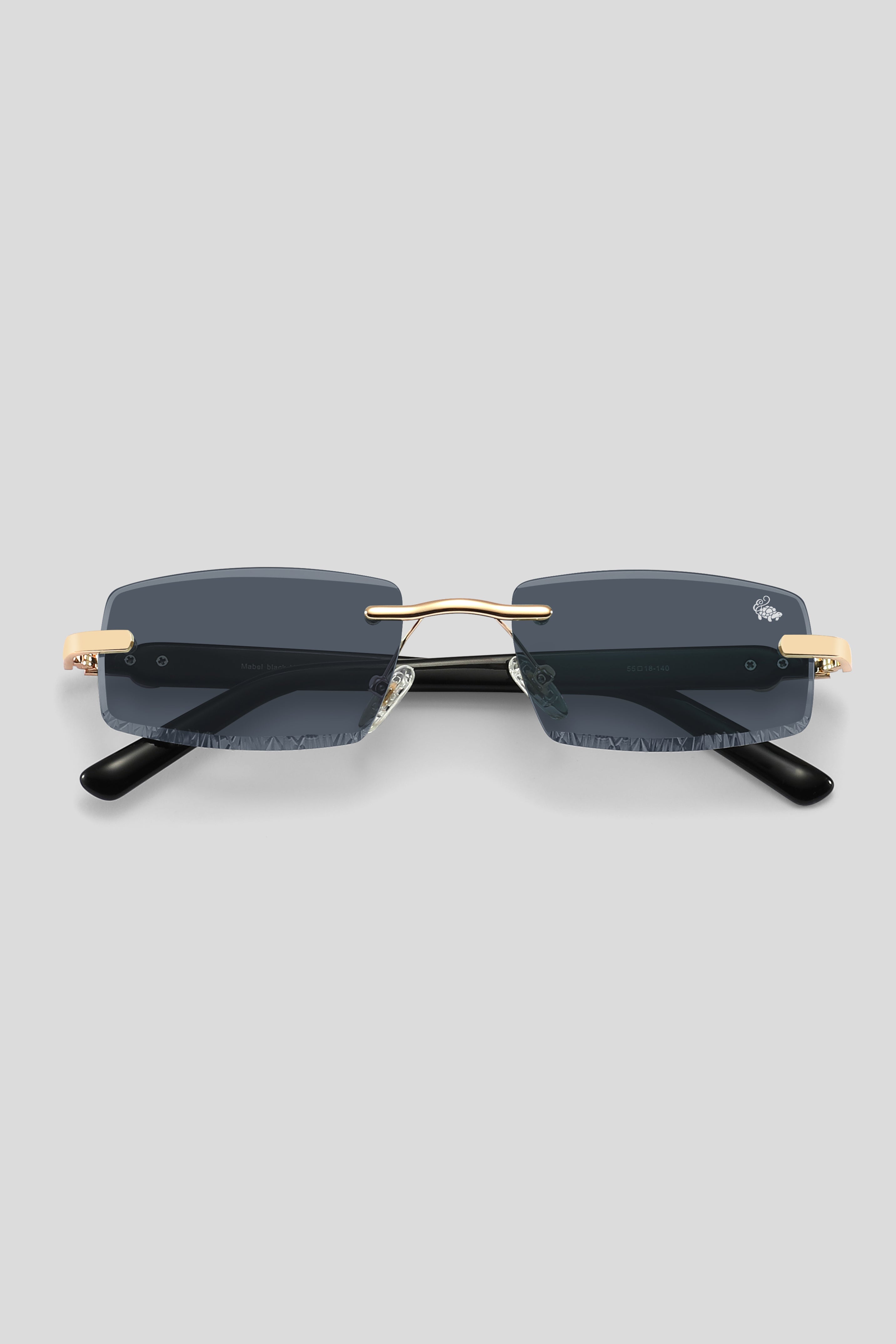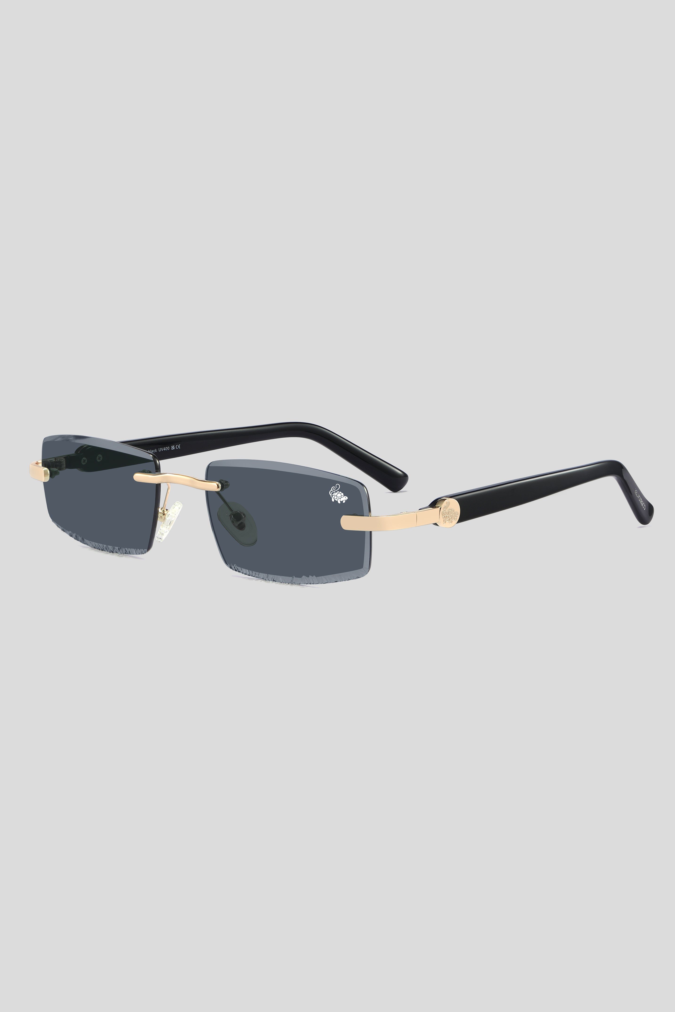 Subtle silk-printed emblem on the outer corner of the left lens