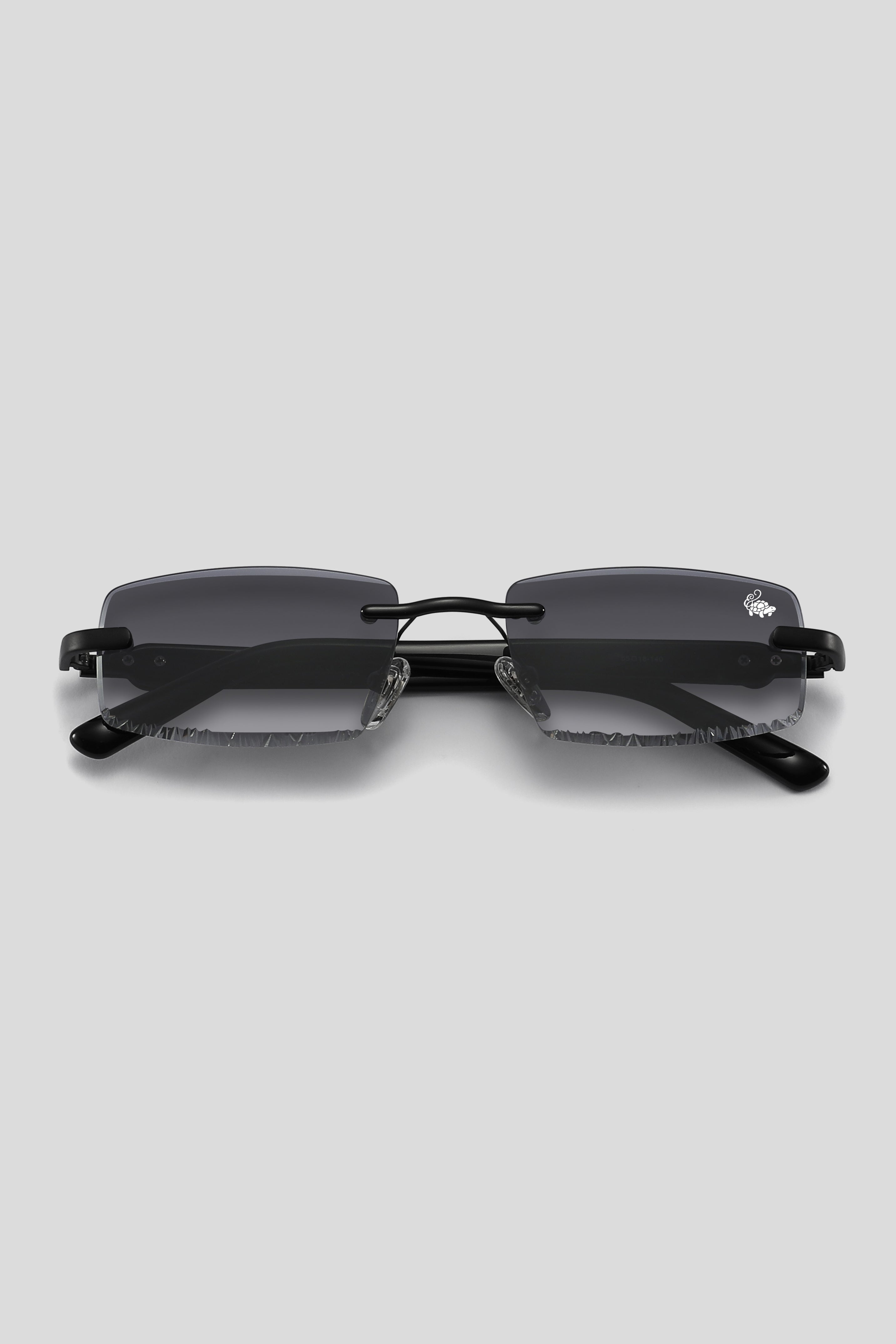 Subtle silk-printed emblem on the outer corner of the left lens