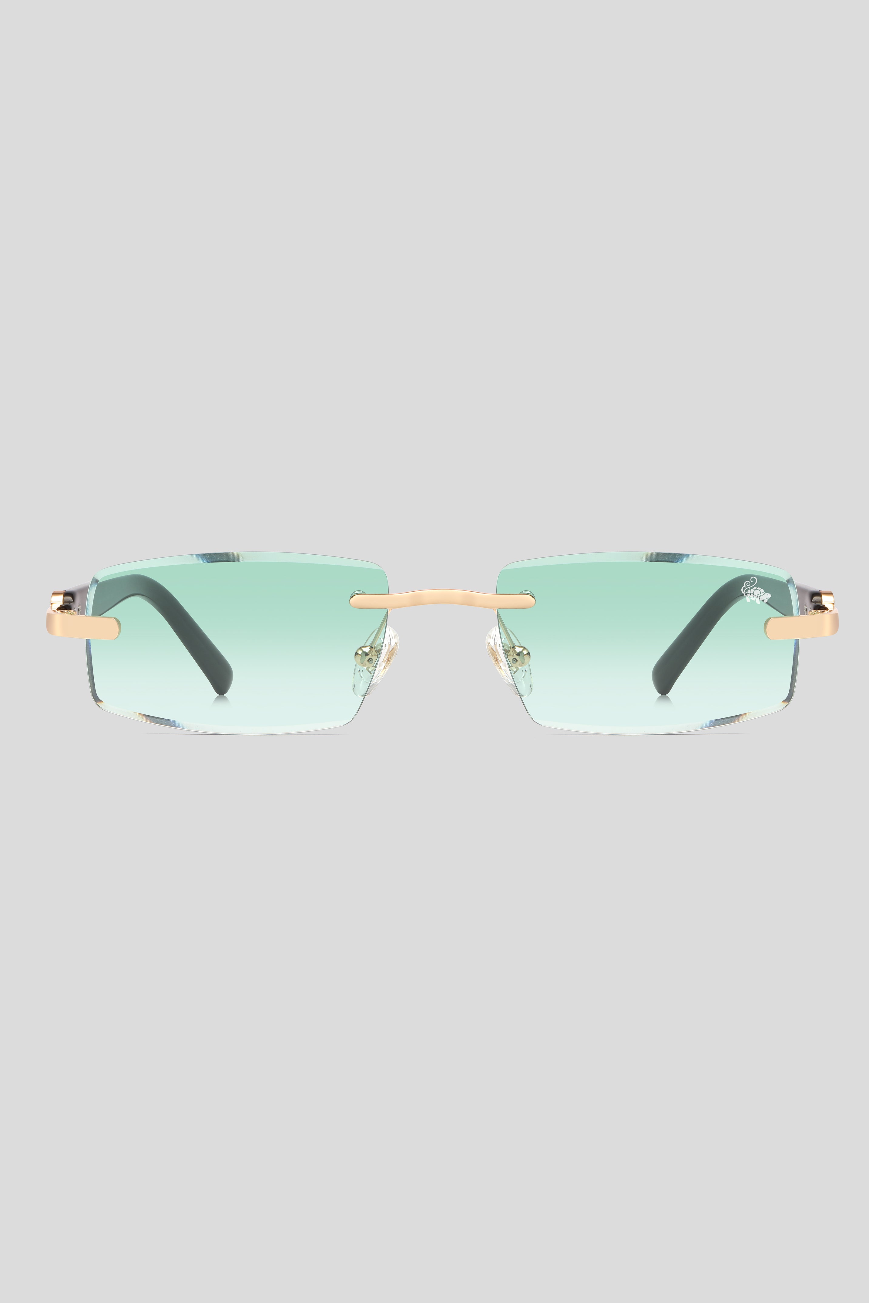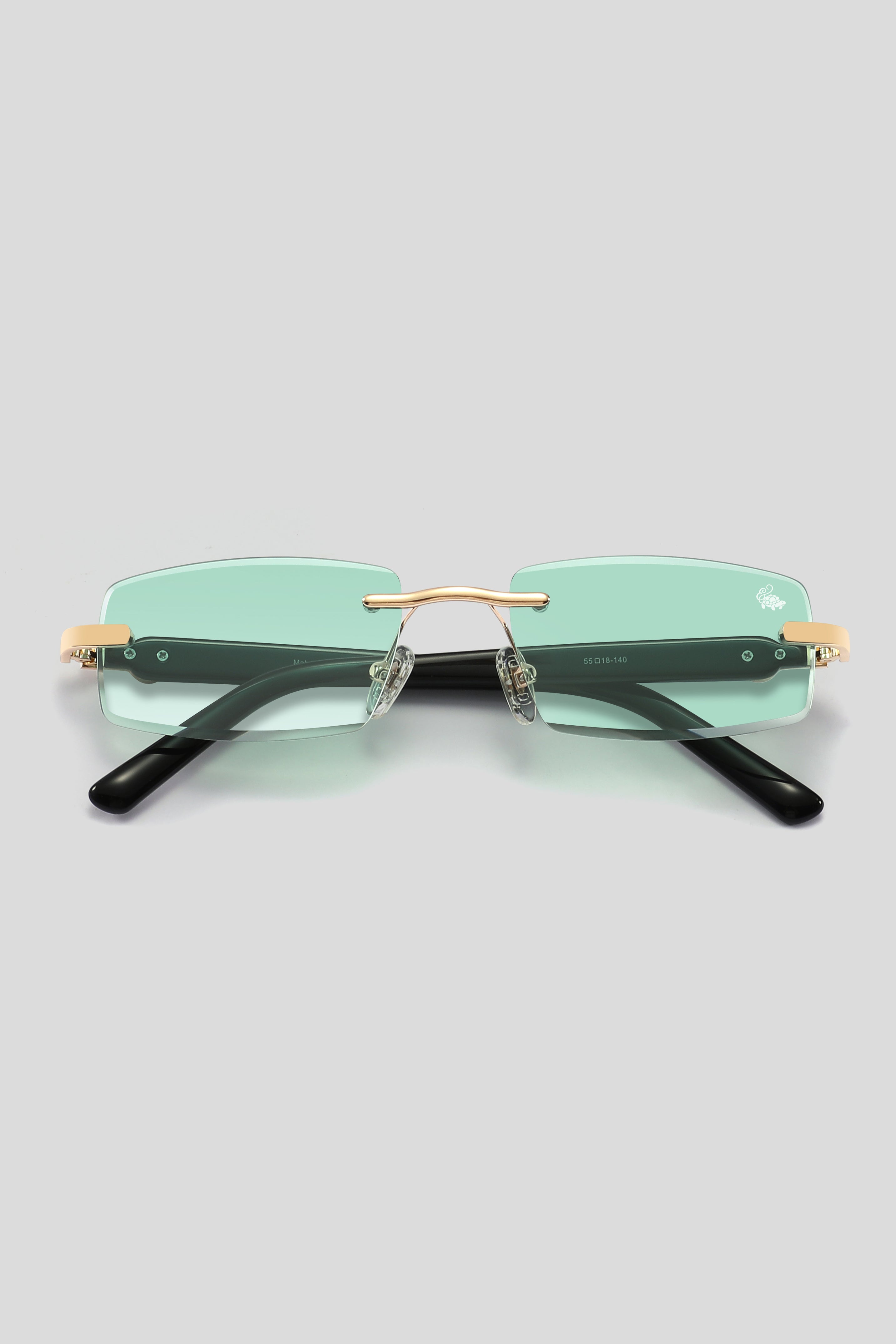 Subtle silk-printed emblem on the outer corner of the left lens