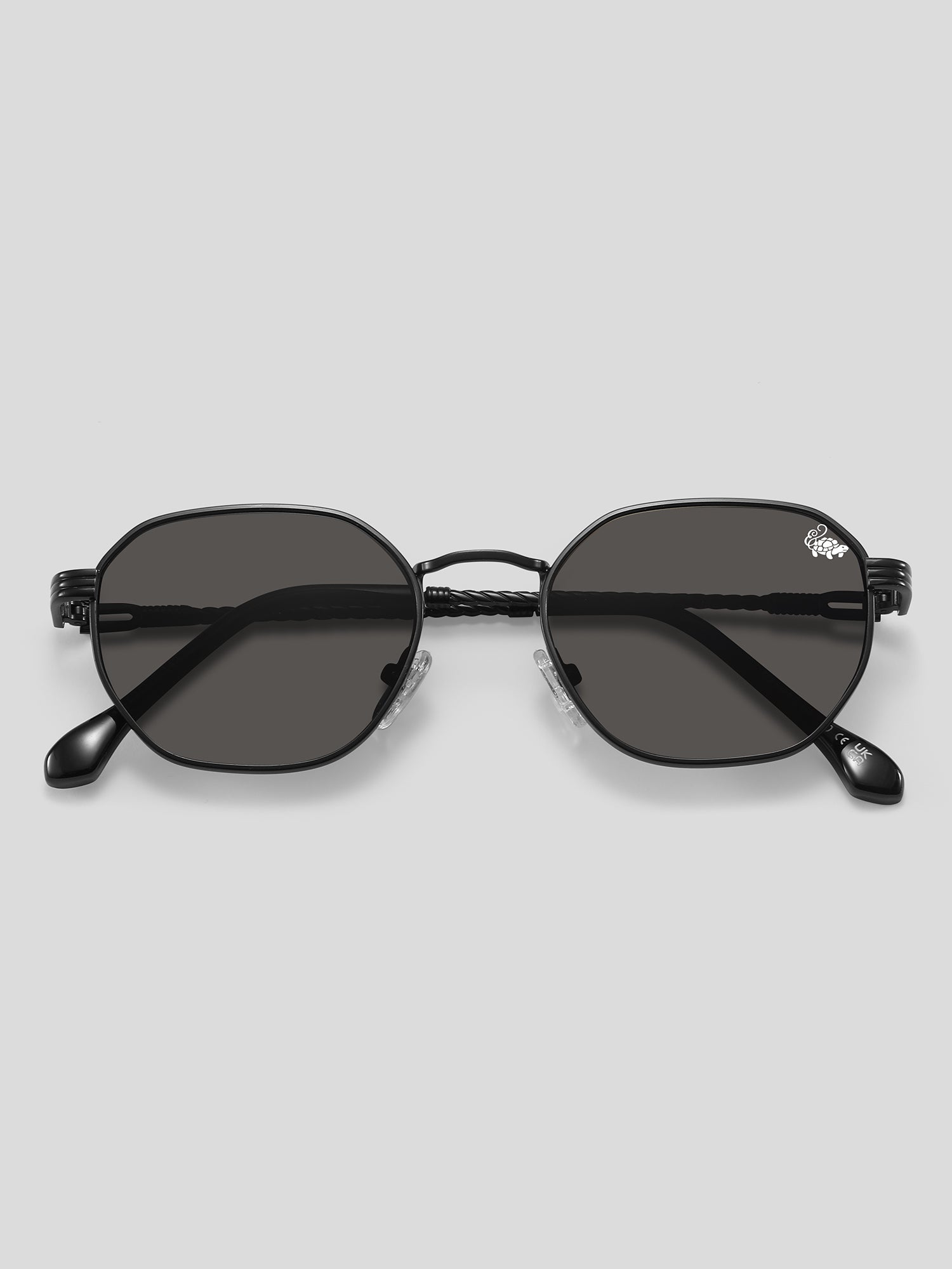 - Silk printed Tortoise logo on left lens